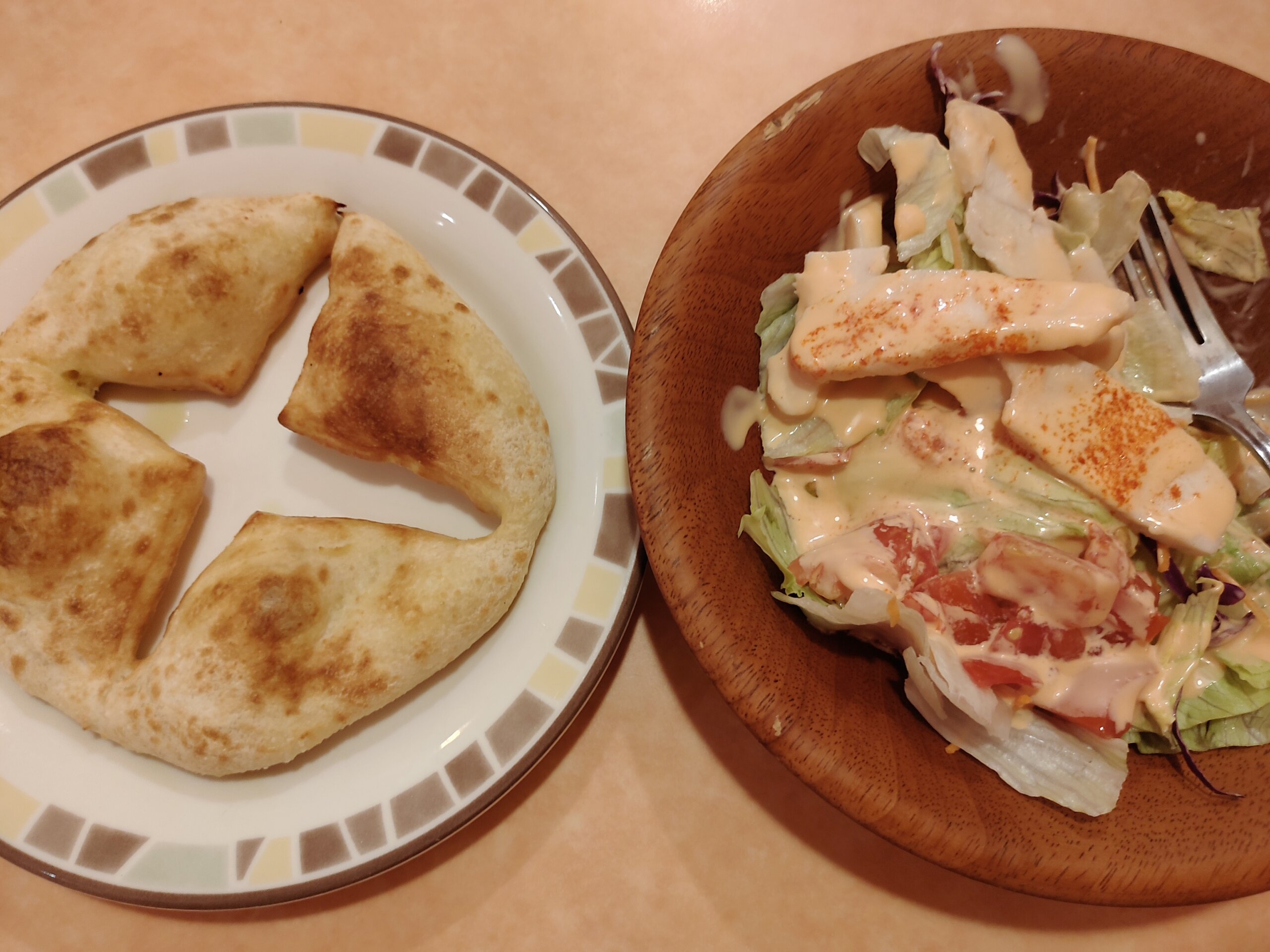 500円、お腹いっぱい。サラダには、スライスされた鶏むね肉が7,8切れ。全部で150~180グラムほどか。この量をグリーングルメで買うと、800円くらいはする。