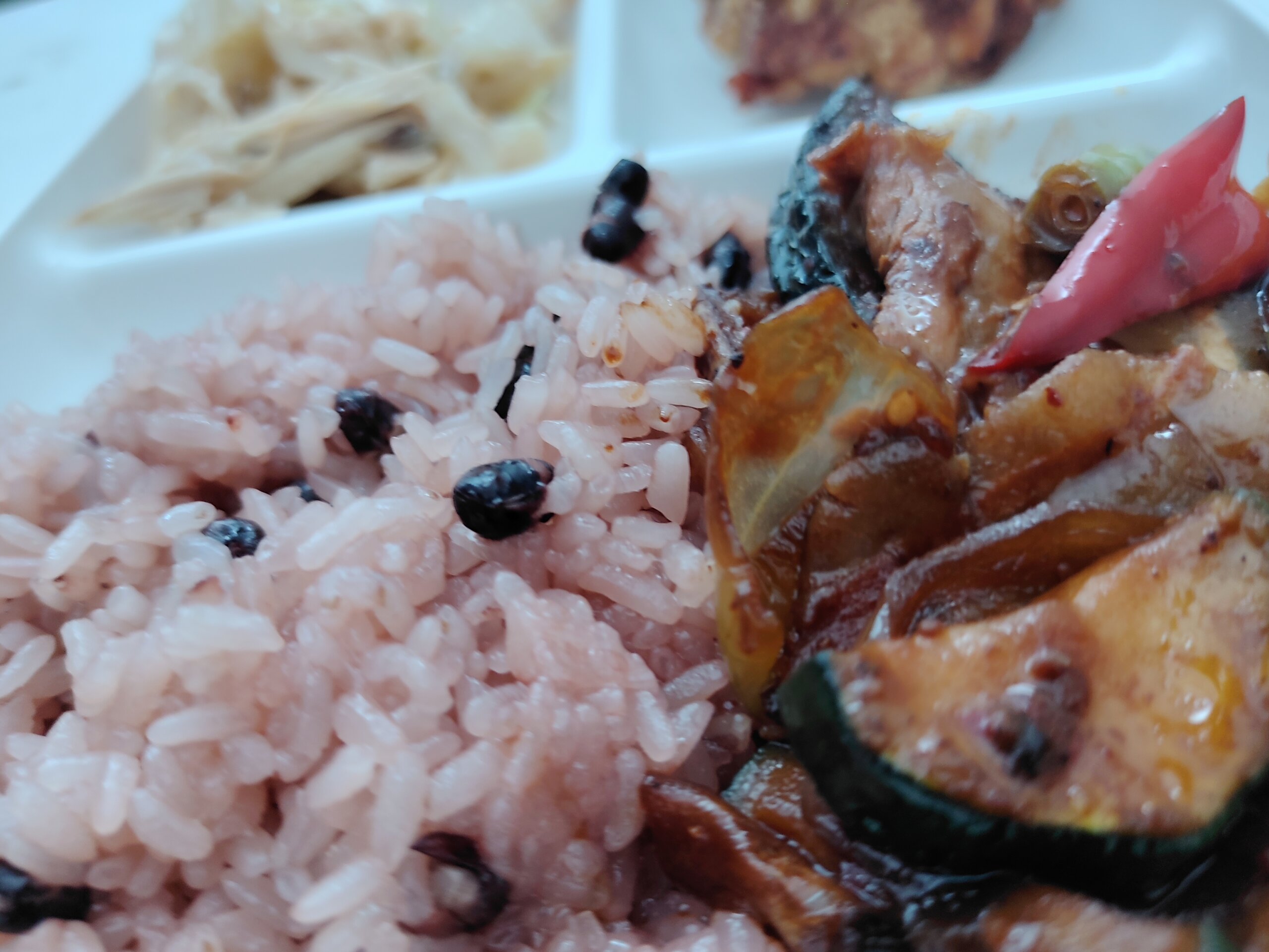晩ごはんは、華音のまかないと、赤飯パックごはん