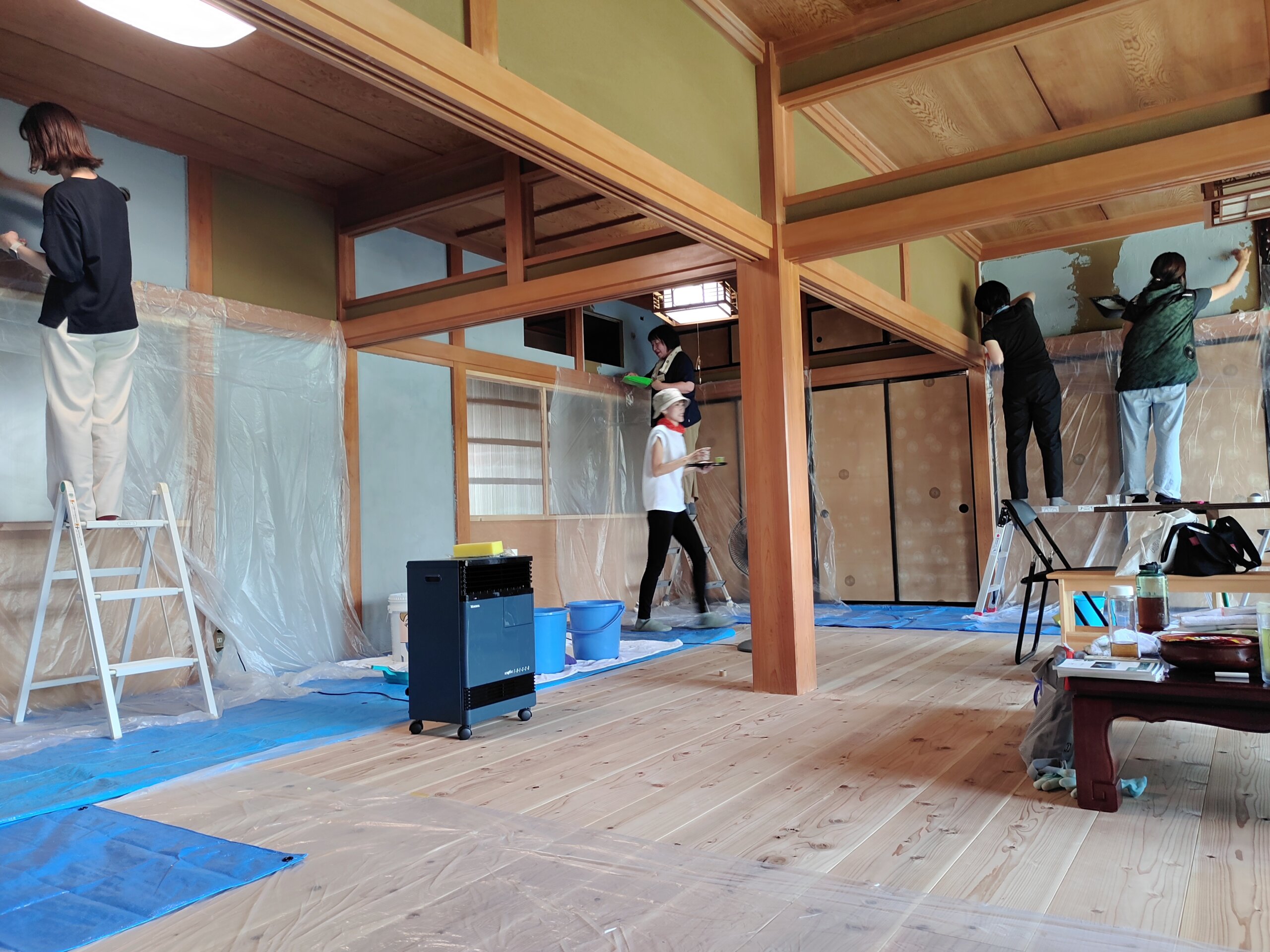 ふむふむ、壁塗って、おしゃべりして、おにぎりたべるんだナ