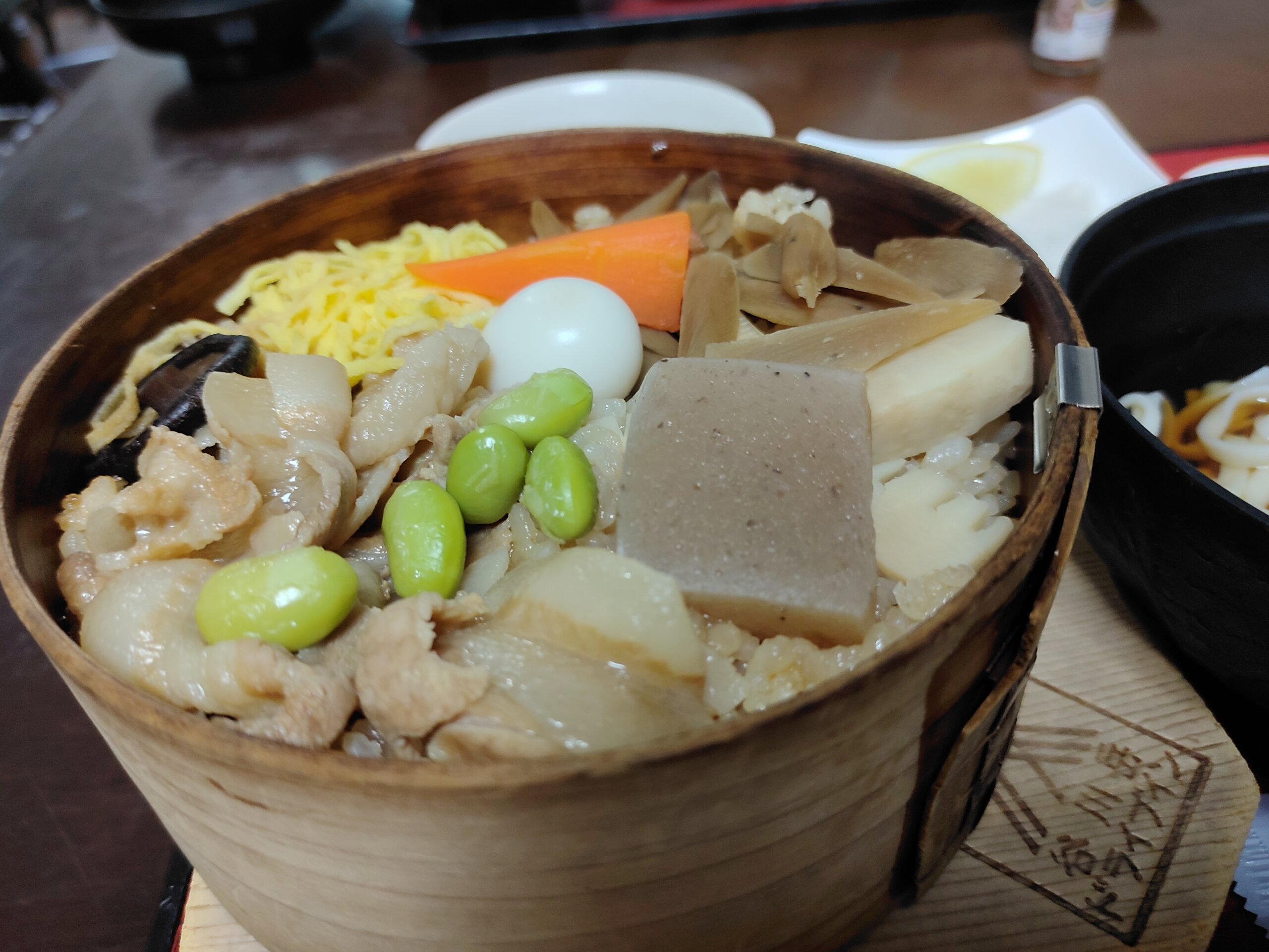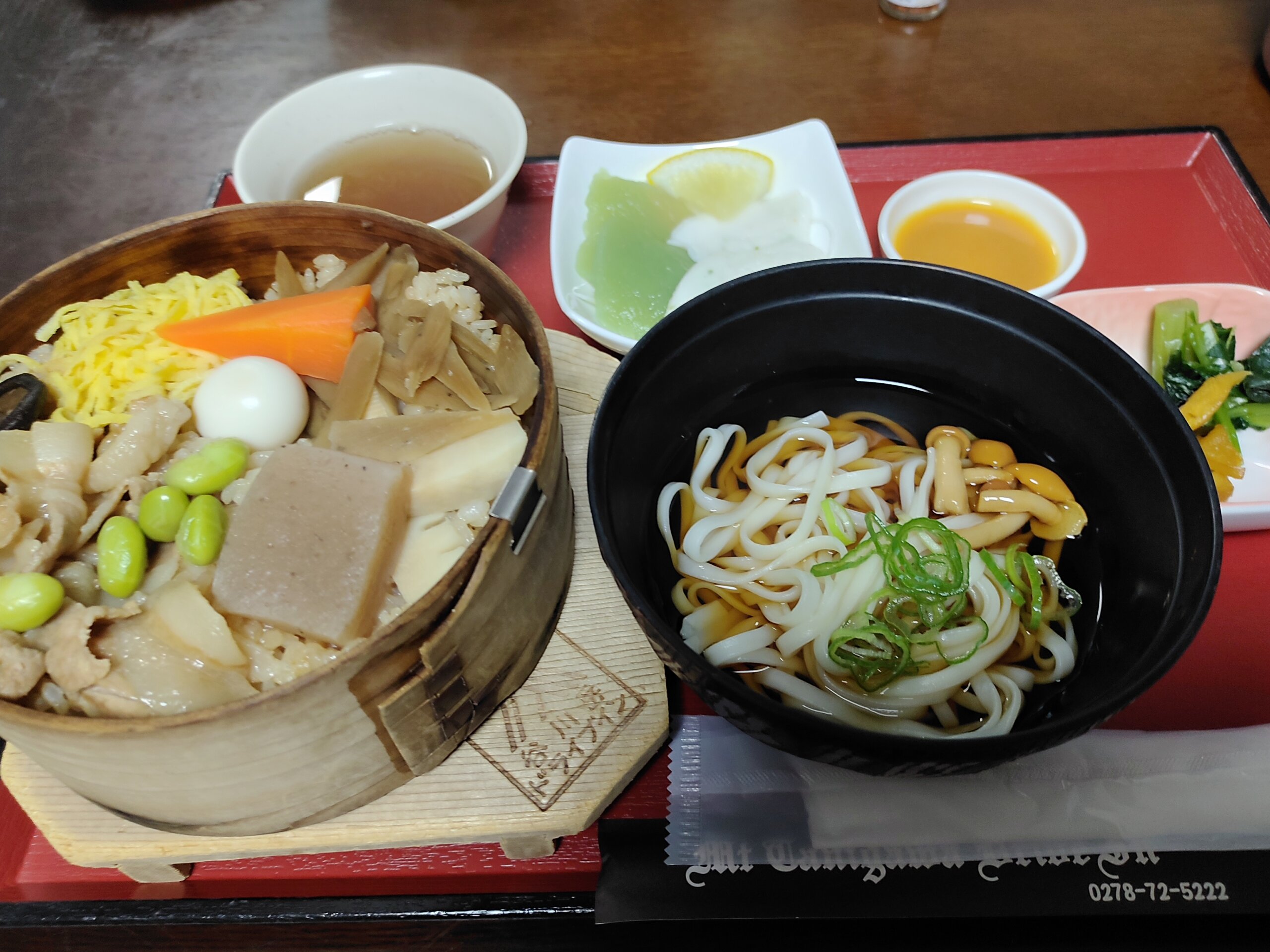 2024.11.2 添乗1日目 紅葉ツアーのはずが記録的大雨な1日。雨模様 ご飯と日記 2024.11.02 昼ご飯は秋の炊き込み きょうと、あしたの宿、今回連泊です 晩ごはんはバイキングで。ここのローストビーフ美味しい おやつに、かりんとうまんじゅう