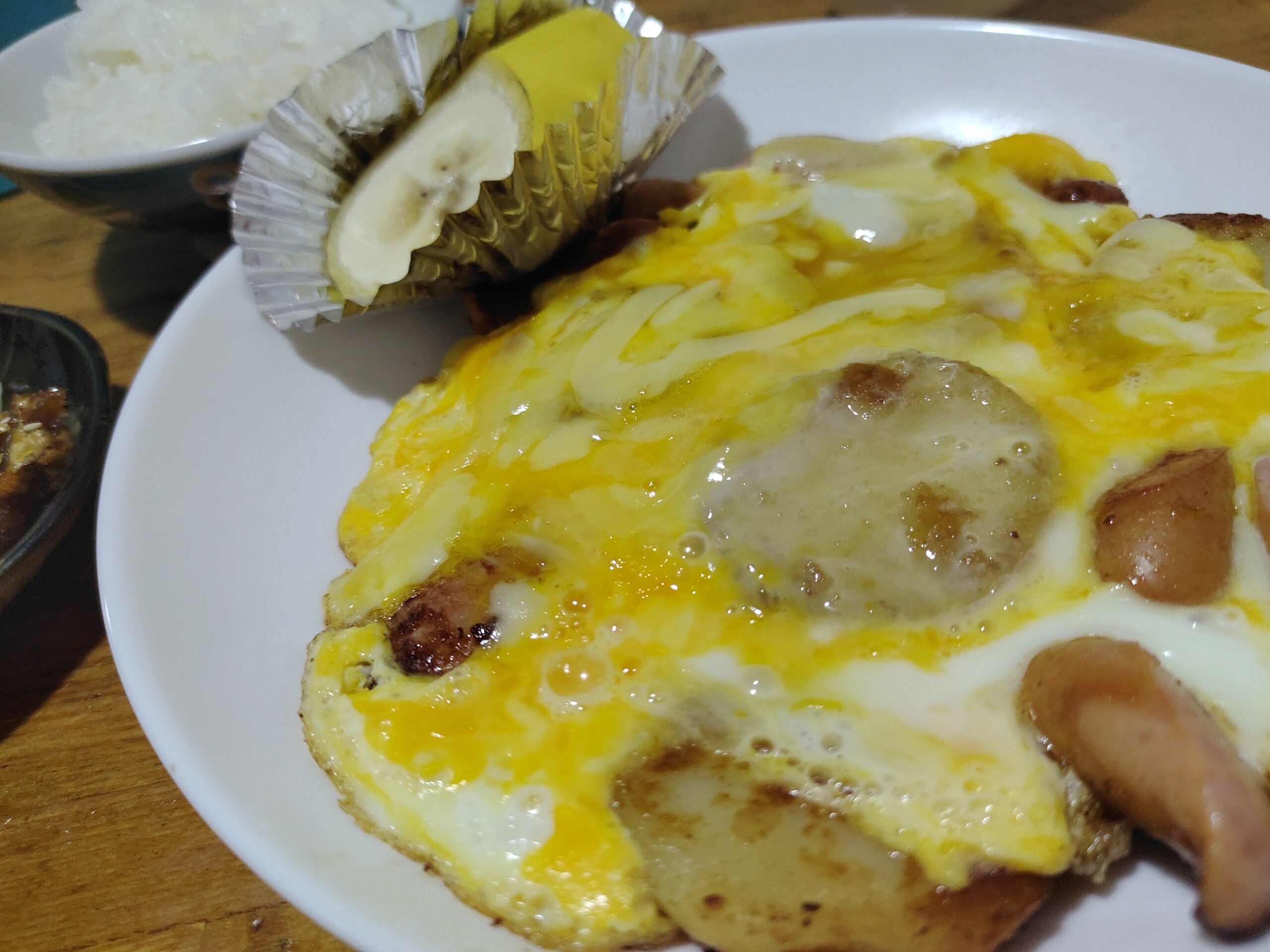 あらびきウインナーとポテトの玉子とじと小ライス 650円