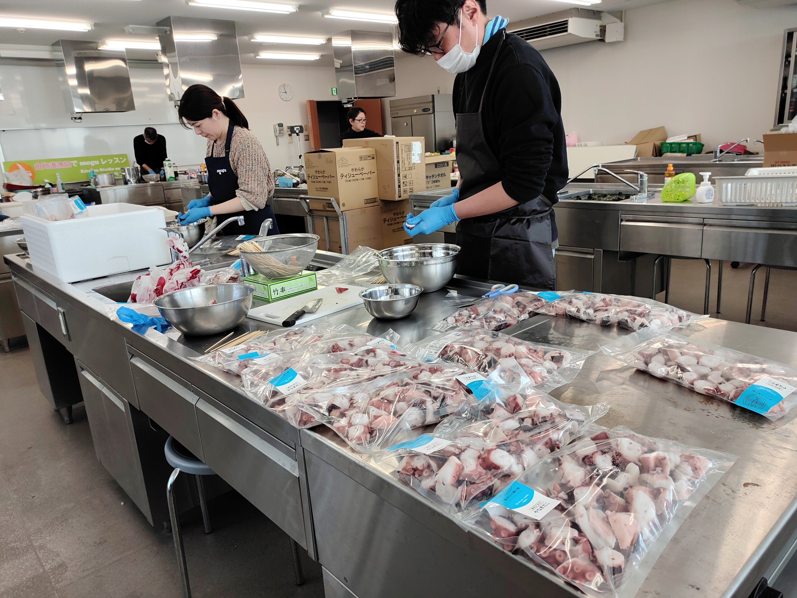 例年恒例。由比漁協のキッチンて、静岡おでんまつりの出店仕込み。