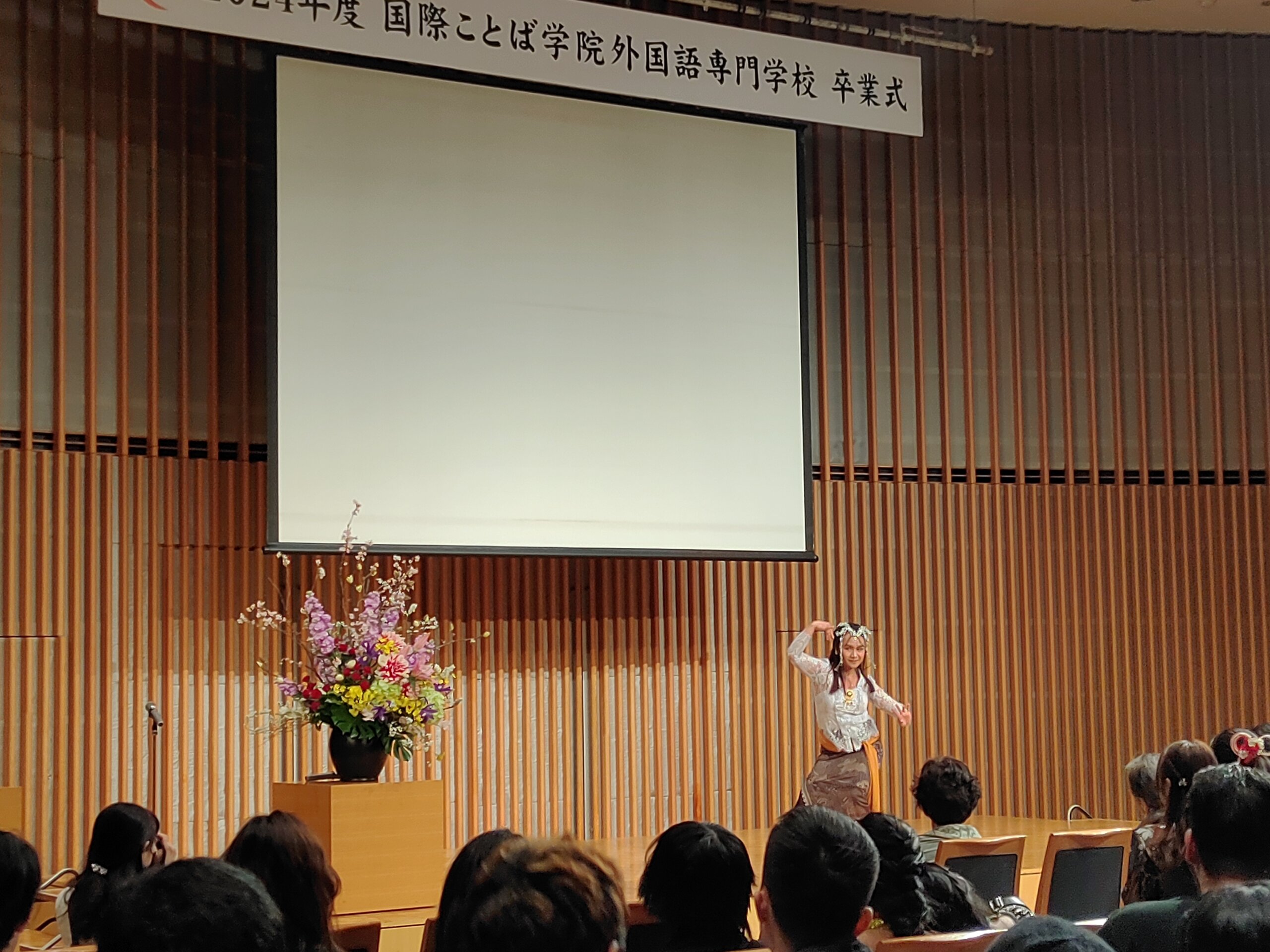 国際ことば学院外国語専門学校の卒業式は、東静岡のグランシップで。開式の前に1年生のインドネシアからきたSちゃんのダンス。エキゾチックでステキだった。ここの生徒は8、9割が外国人で、自分は、2012年4月から、パソコン(オフィス)を日本語で使えるようにという授業を続けてきました。