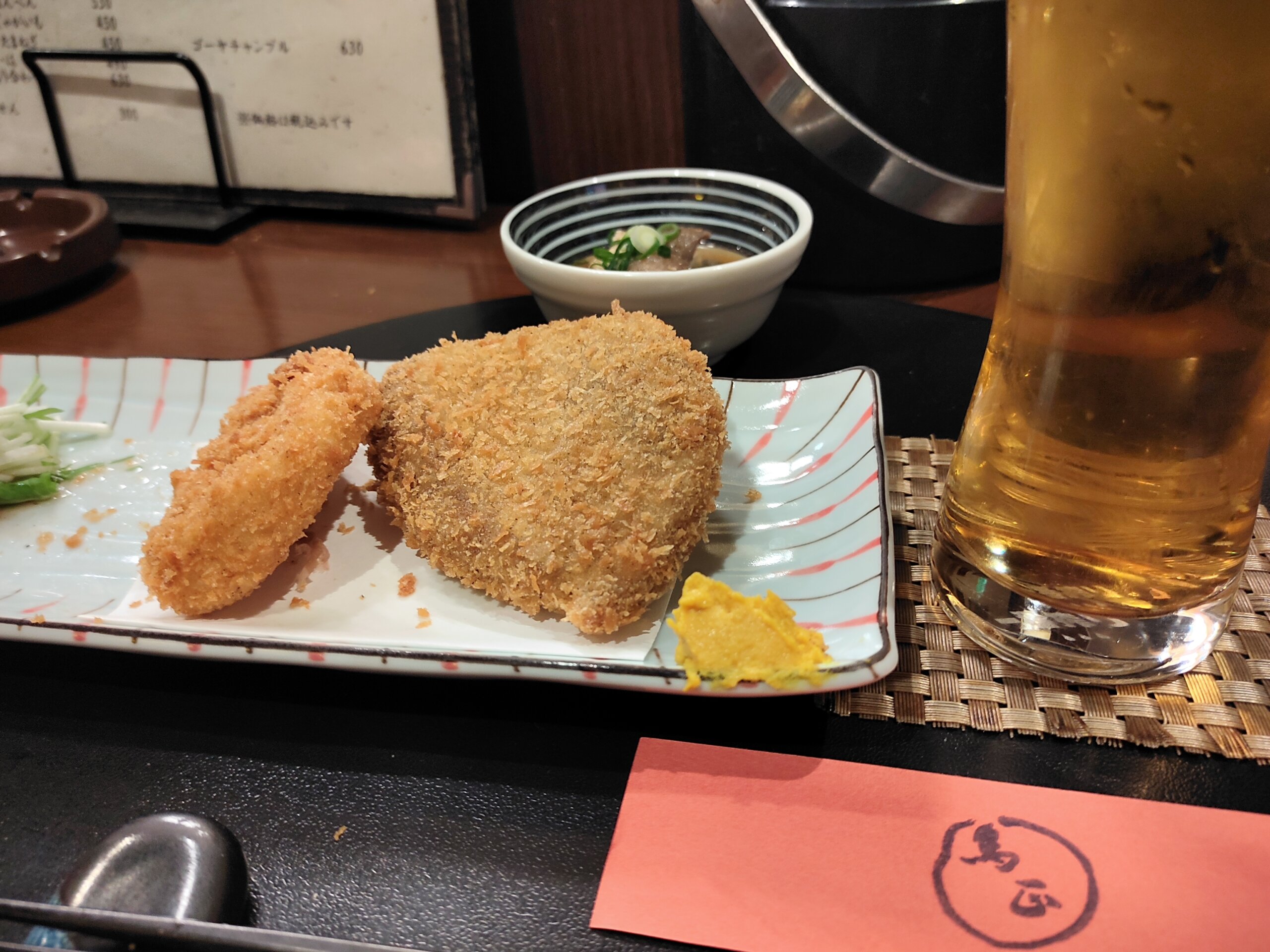 自動車学校のあとは静岡へ帰って鳥正で、蓮根と黒はんぺんのフライ。