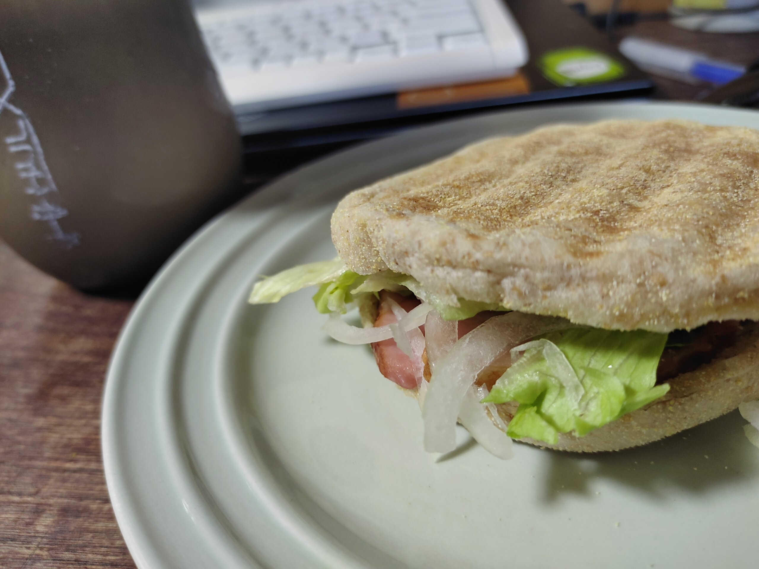朝ごはんは、プロテインとイングリッシュマフィンのホットサンド
