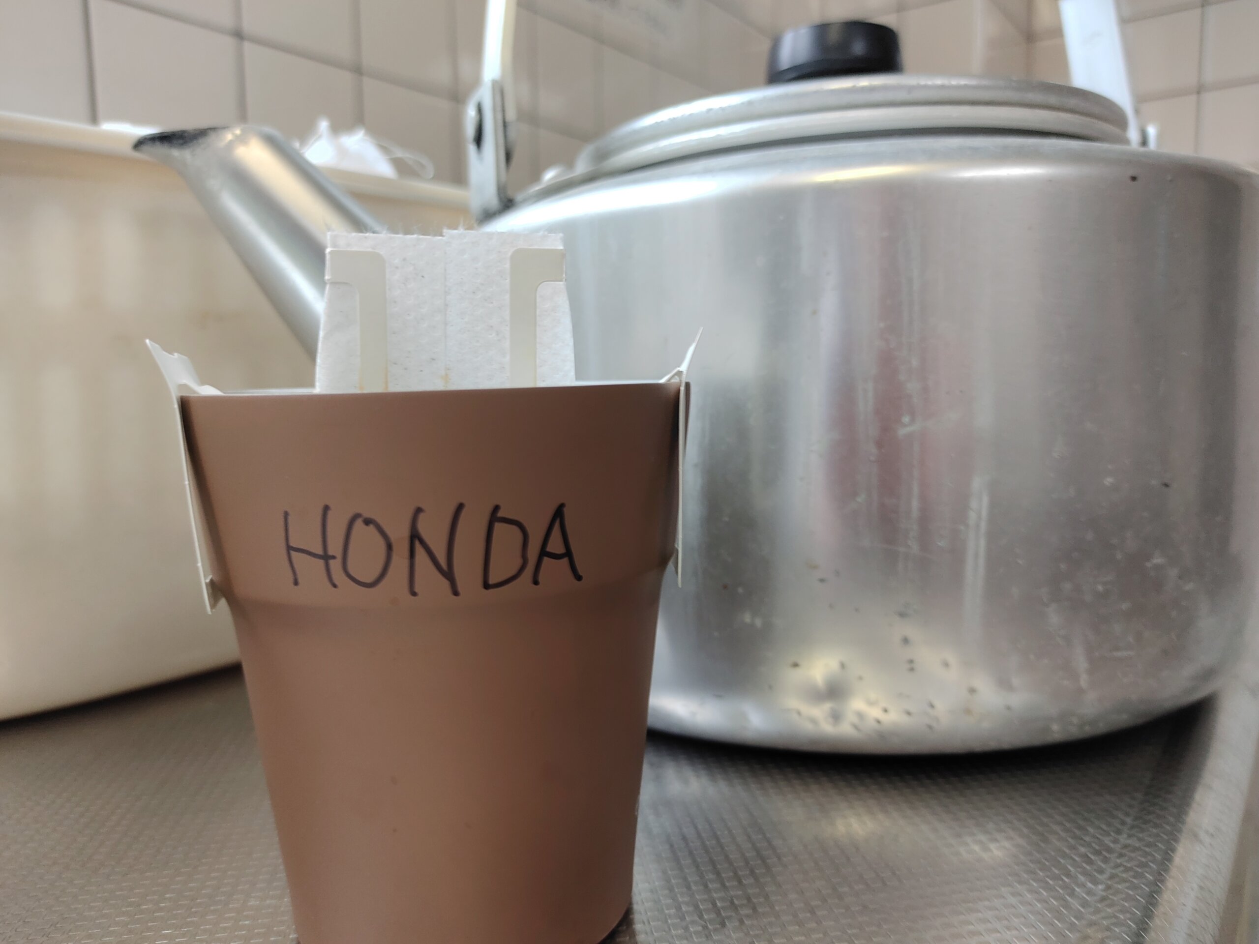 昼食の後、コーヒー淹れて飲んでるんだけど、やかんの直径が50センチくらいある巨大さでウケる!!