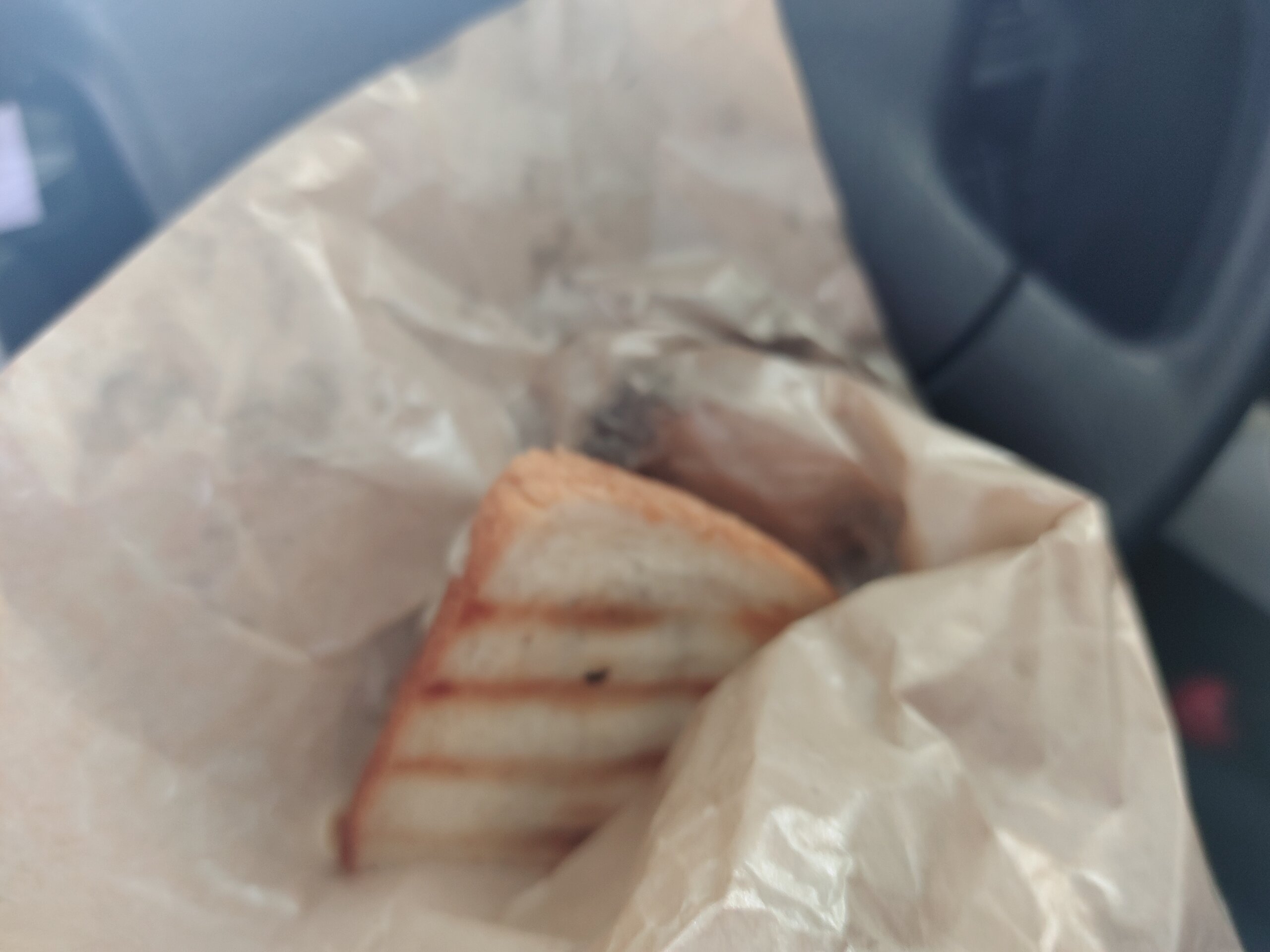 あとの半分は、テイクアウト?して、午前9時頃にタクシー車内で食べました。