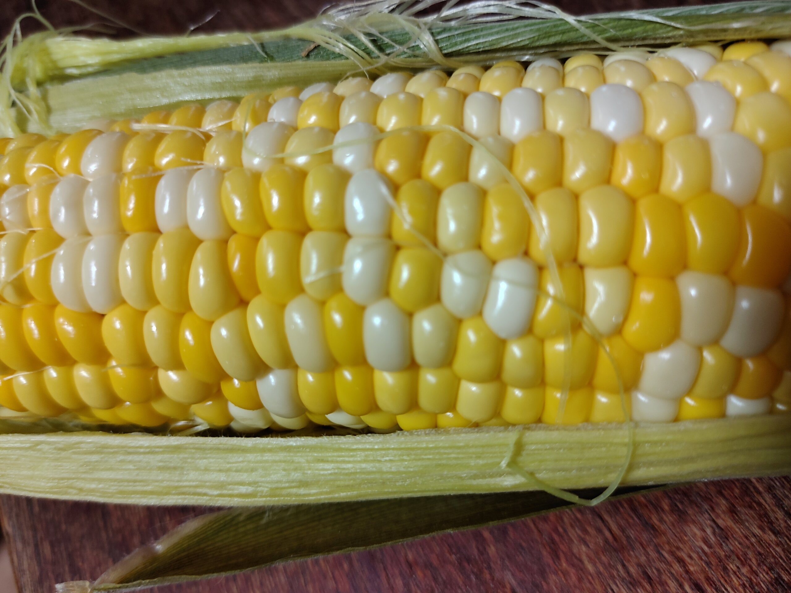 トウモロコシは、皮ごと、レンジでチンすると