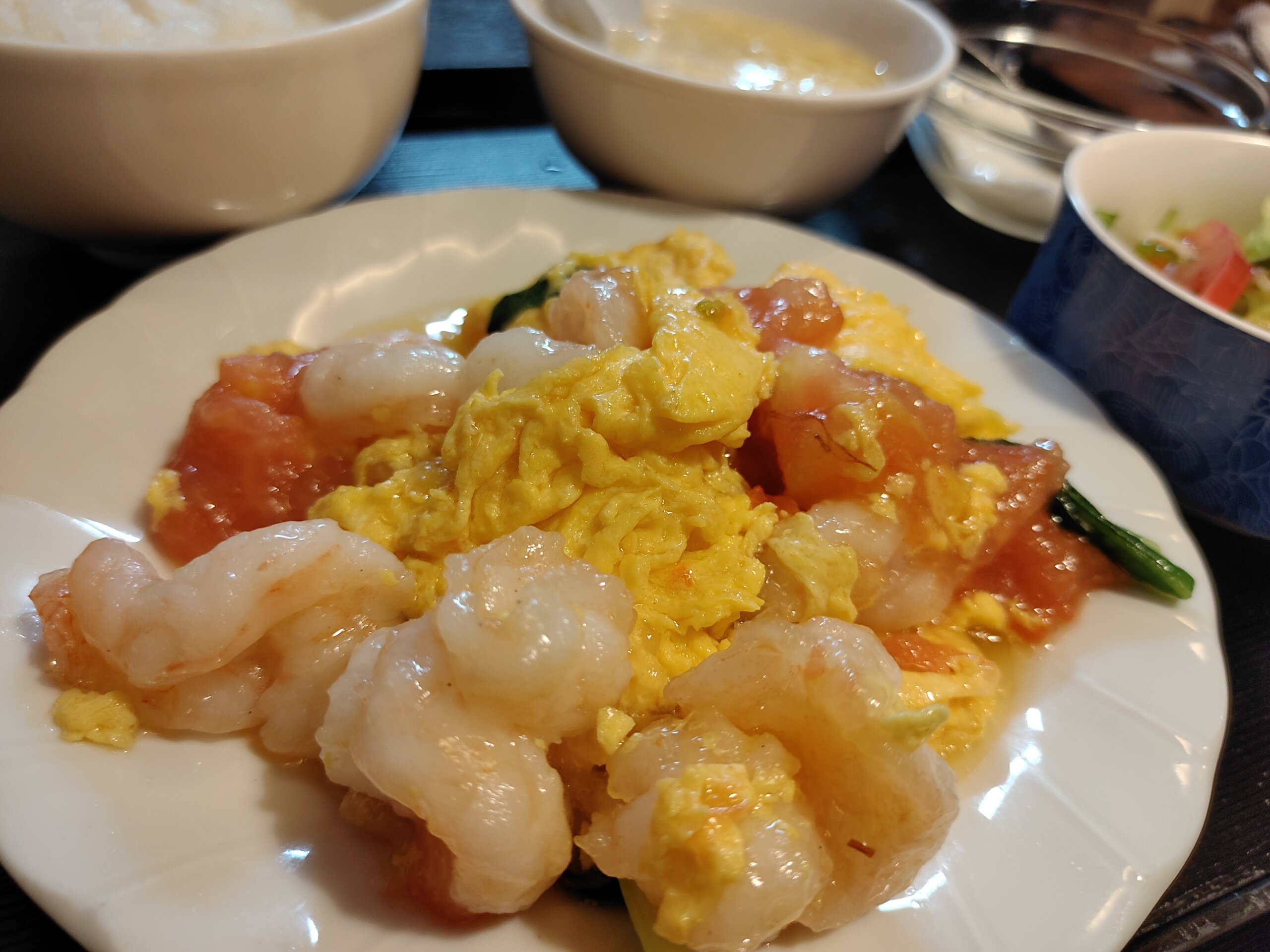 お昼ごはんも、ご馳走になっちゃった~。エビとタマゴの炒めもの。