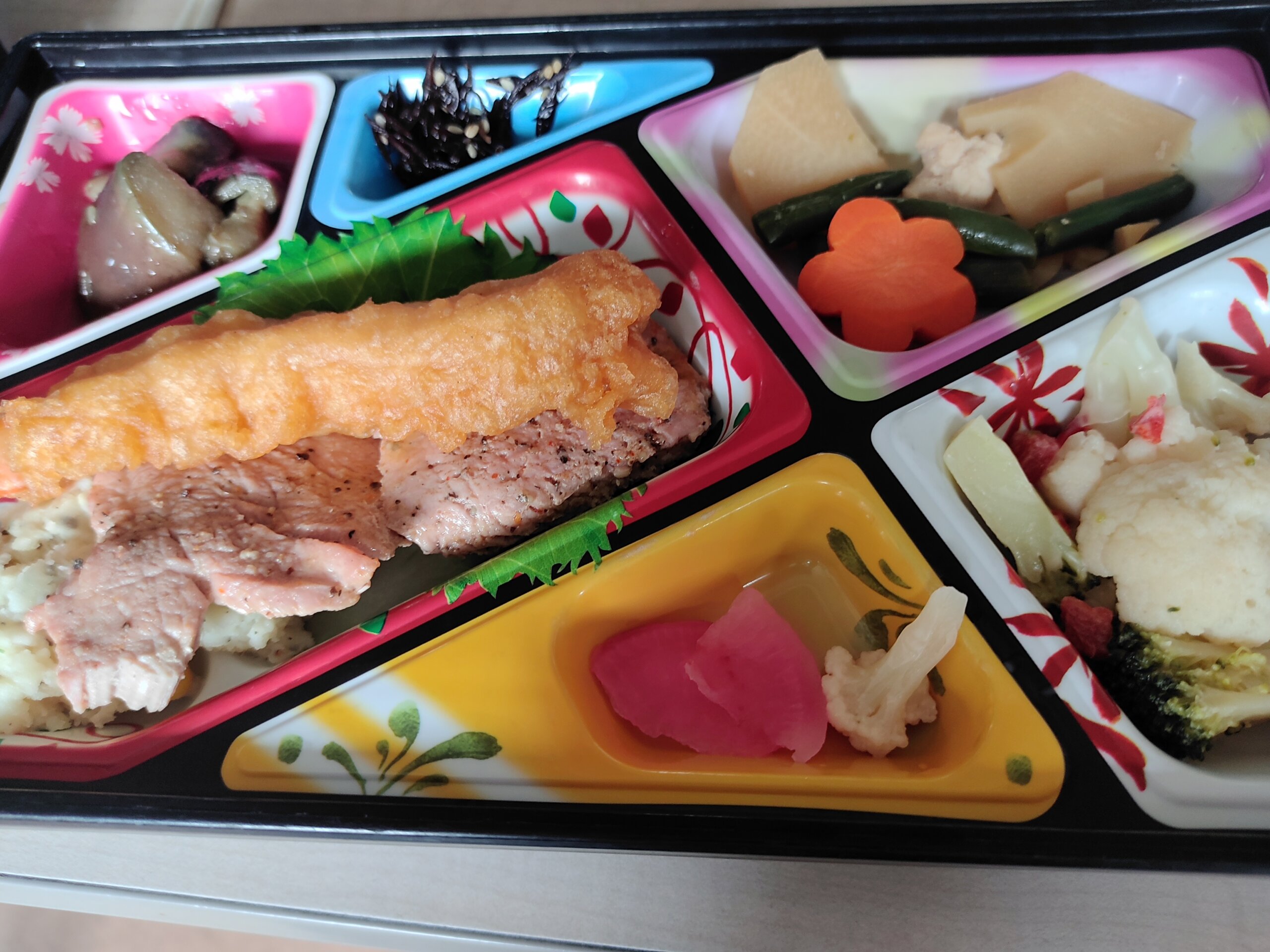 ほんだは、早朝~10時半まで、タクシー乗務をして、その後、タクシー会社で注文している、しずおか給食のお弁当を、昼ごはんに食べます。