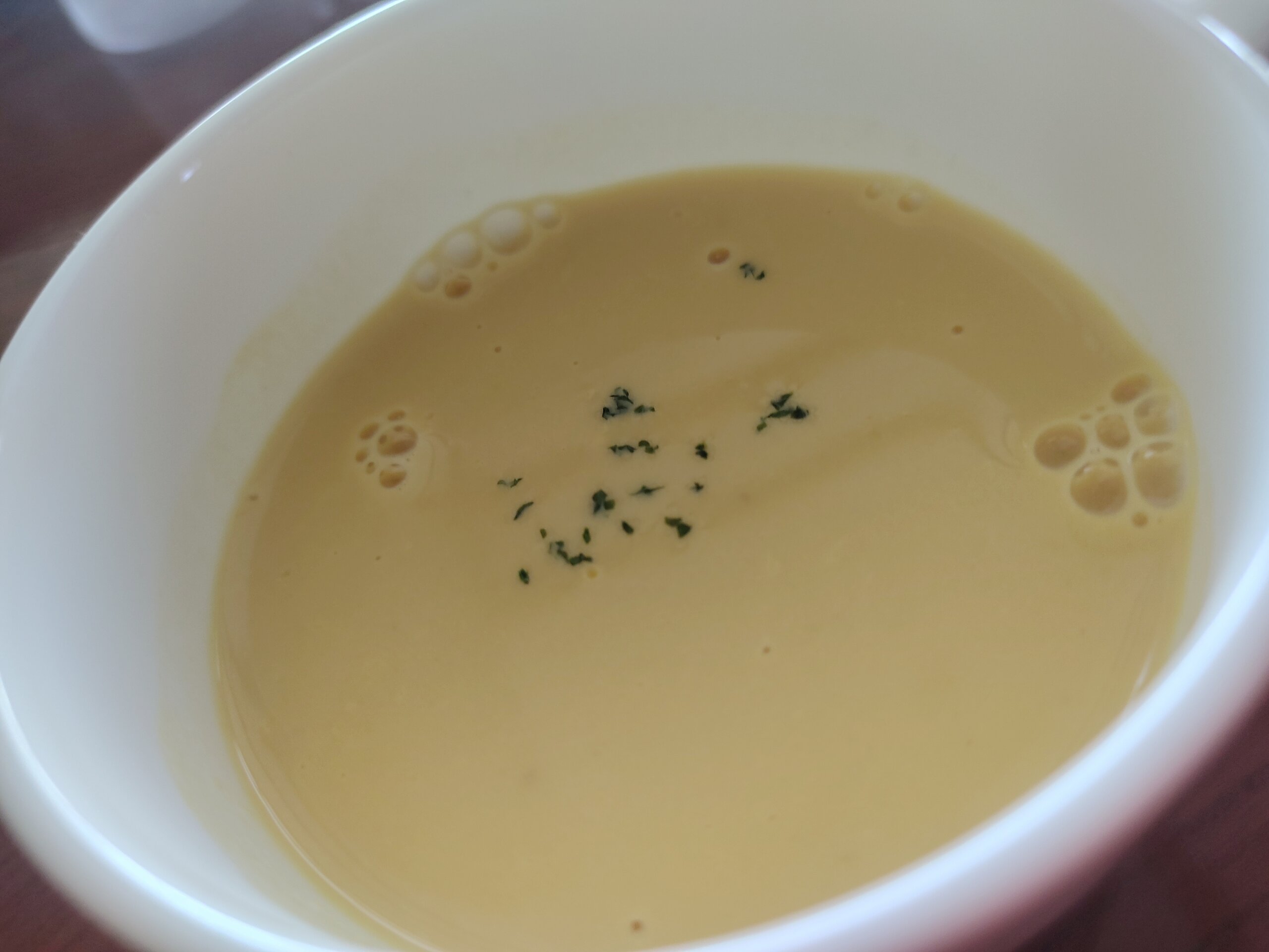 ニンジンのボタージュは、ほんのりニンジン甘くて、美味。