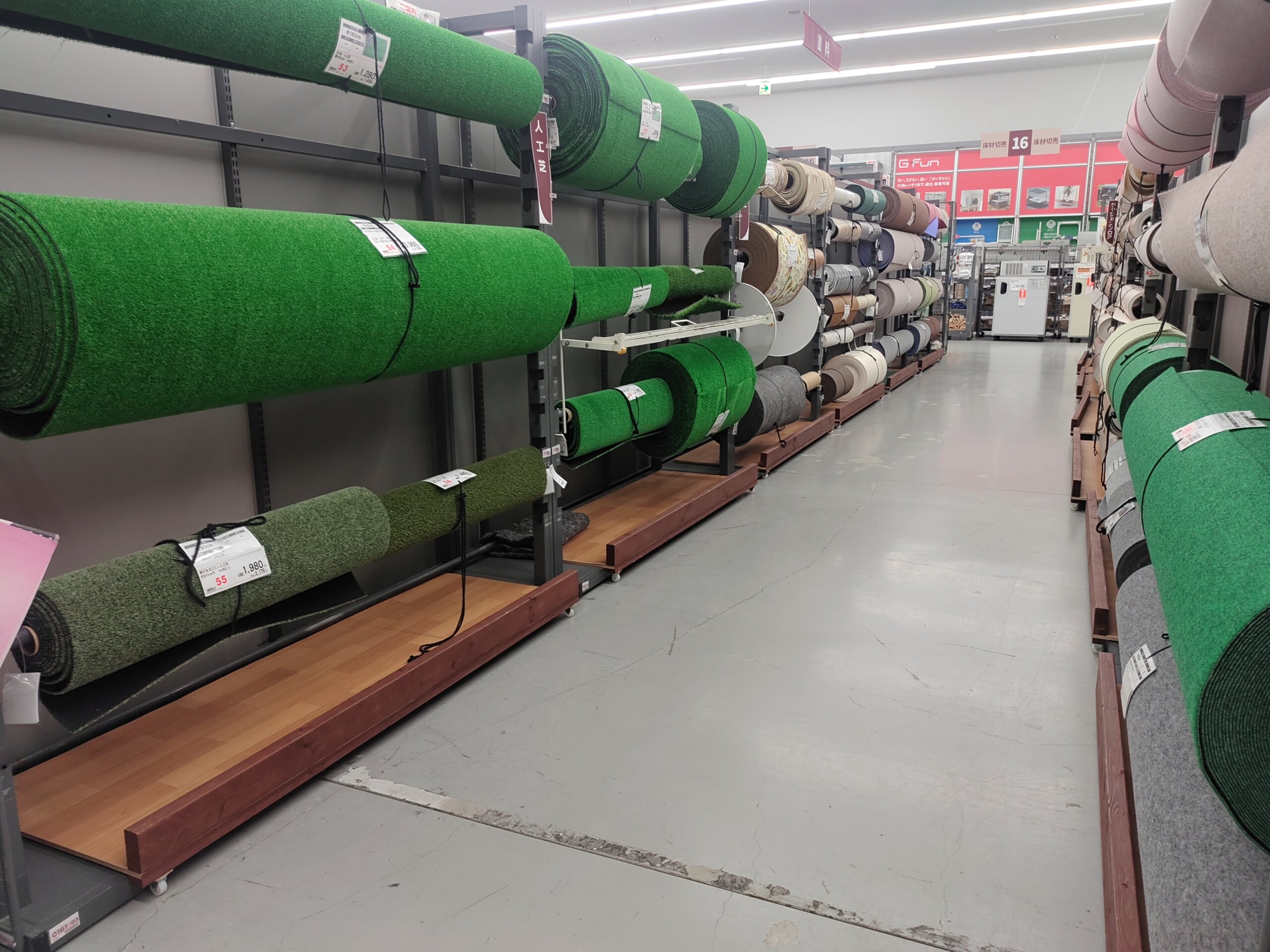 お昼ごはんが終わったら、水中ウォーキングと平泳ぎ・背泳ぎで、1時間。お風呂にも入って、お次は、100均、ホームセンター巡り。おめあては、人工芝。