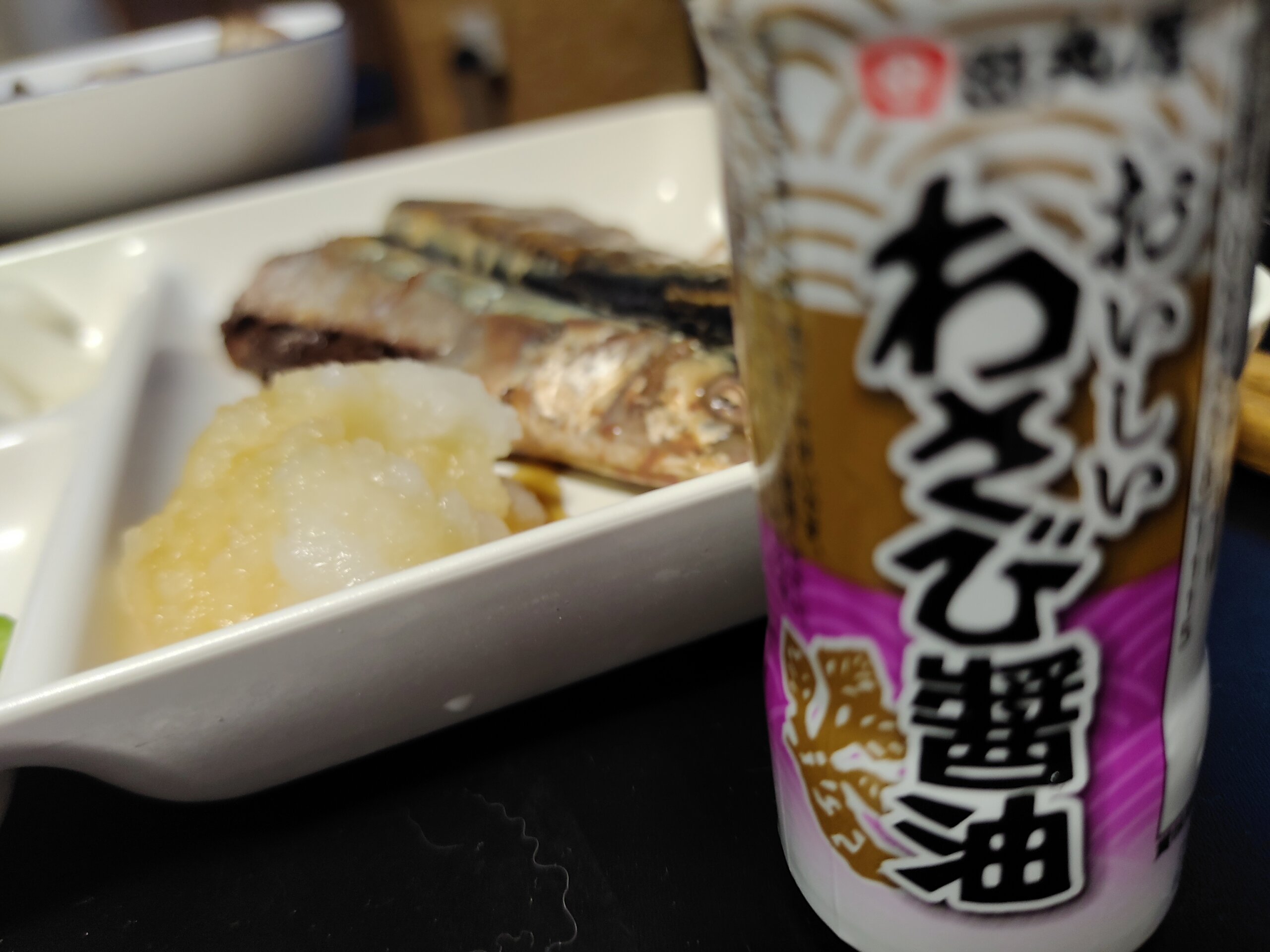 思いついて、サンマを、田丸屋さんのわさび醤油で食べたらおいしい~。