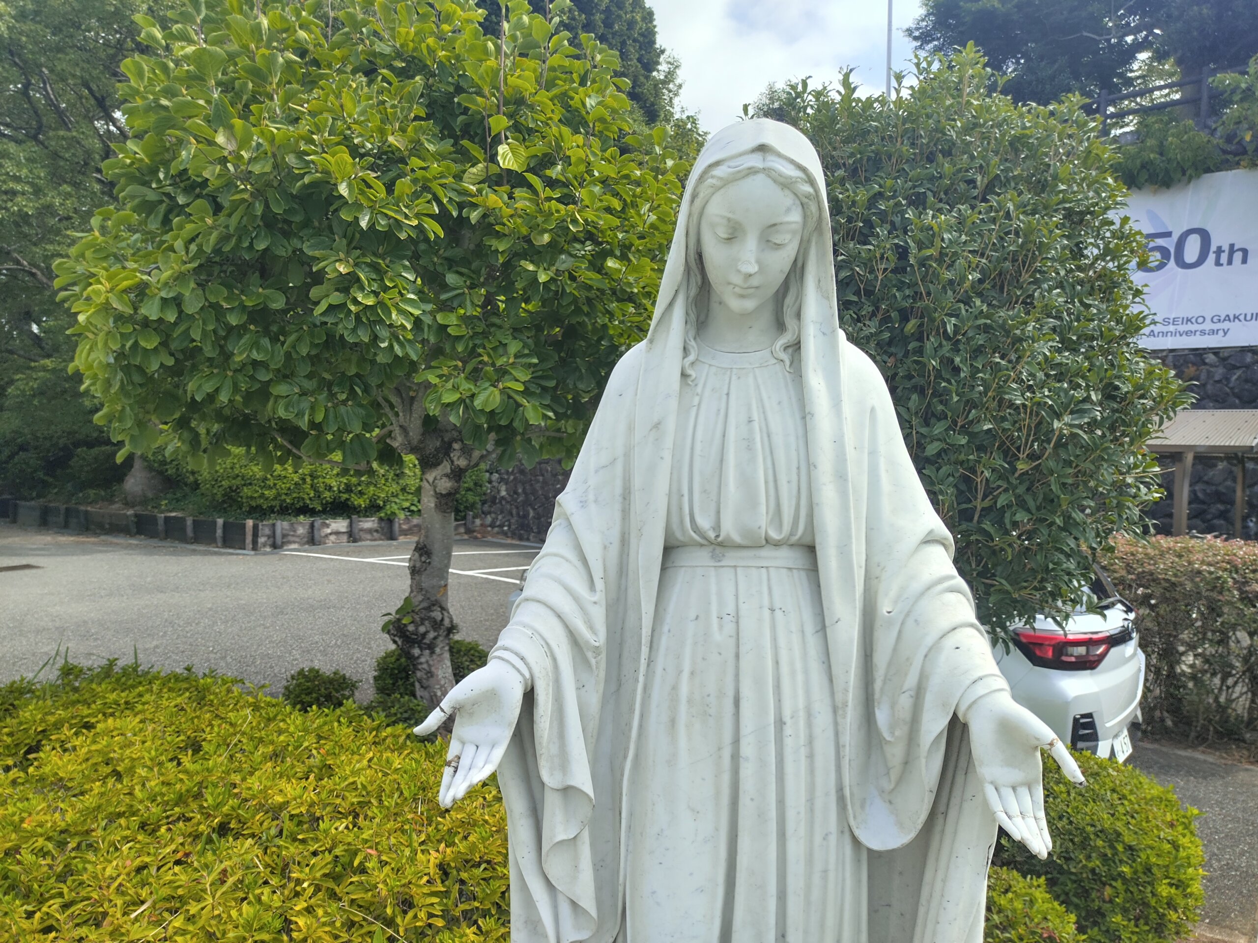 メインビジュアルは、タクシー乗務で静岡駅南口から、月に1回ほどお客様をお送りする学院の、マリアさま。