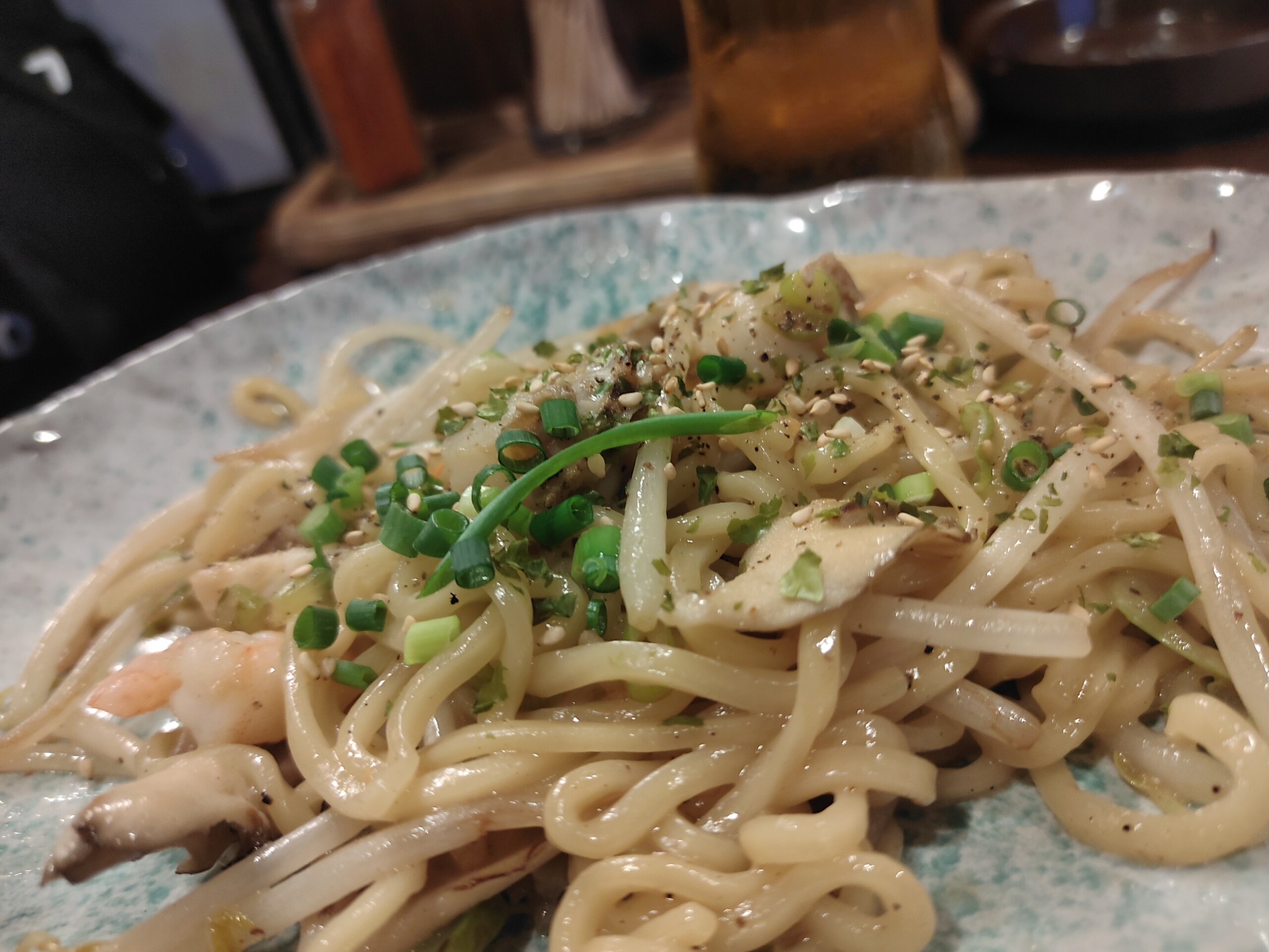 晩ごはんは、鳥正の、海鮮焼きそば(塩味・特注)
