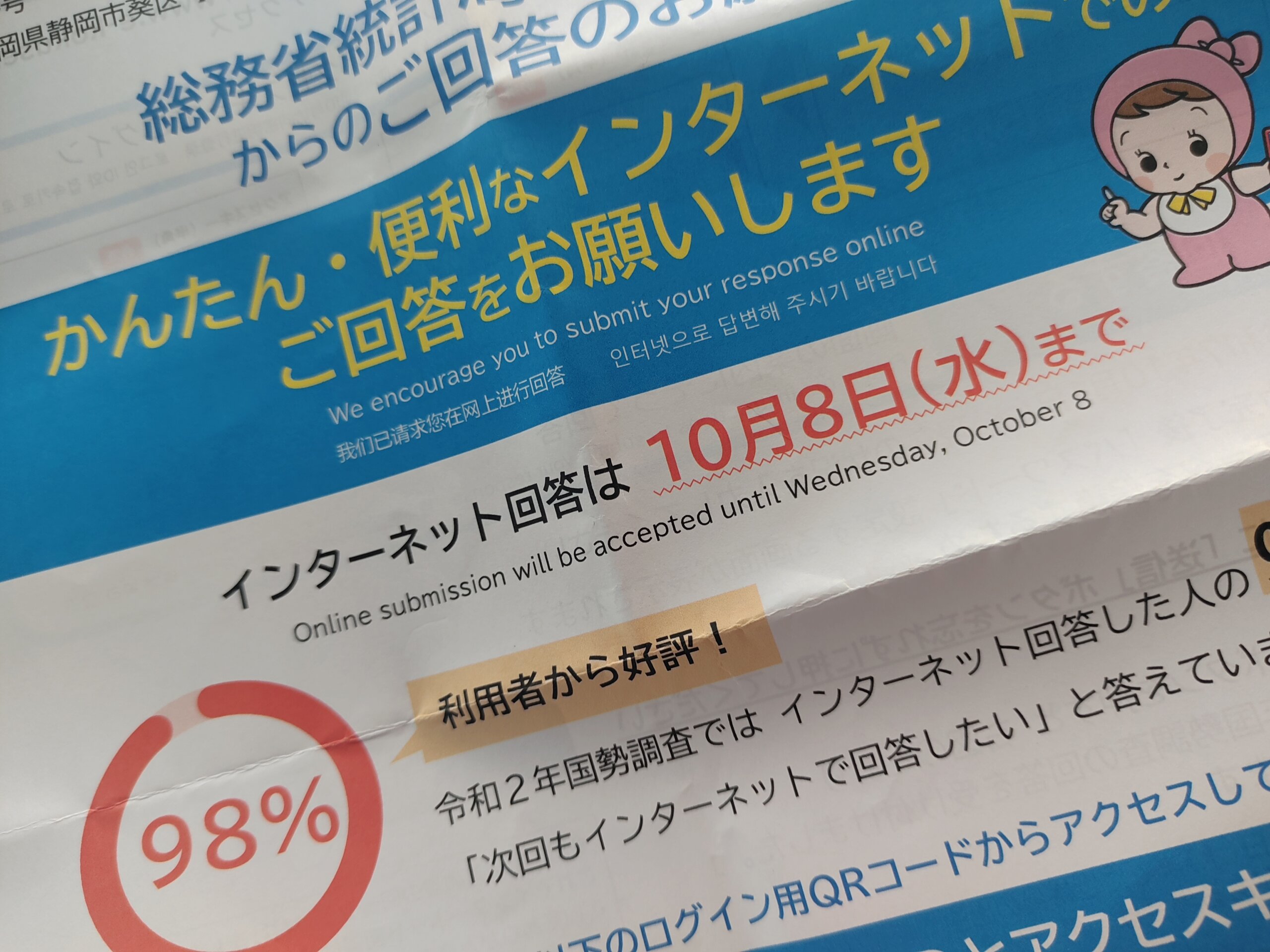 帰宅して、インターネットで国勢調査。メチャ簡単。