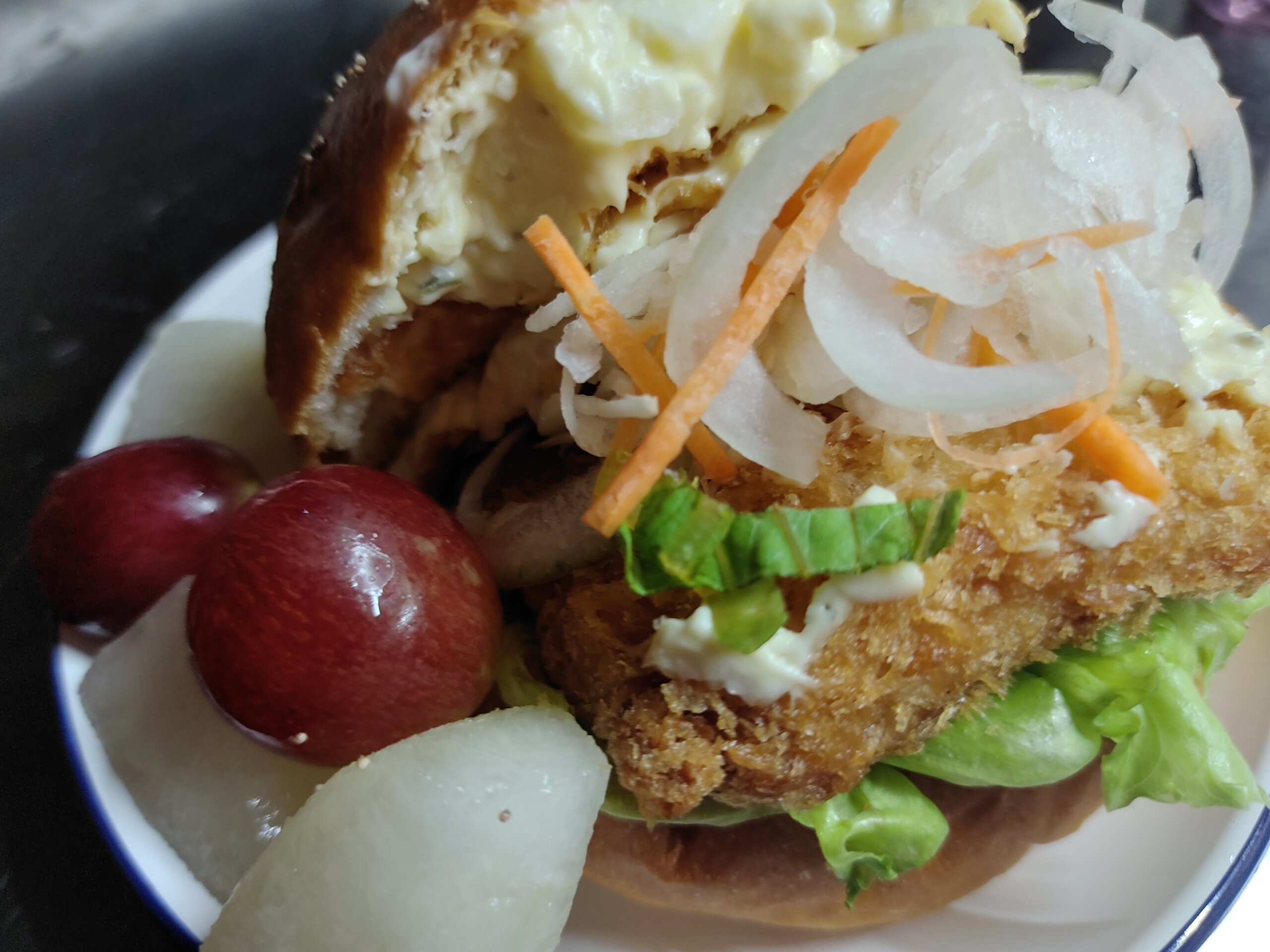 このフィッシュバーガー、大好物で、読売新聞社時代の同僚はHさんが、ここの店主のイトコだったので、ときどき買ってきてもらって、お弁当にしていた思い出のバーガー