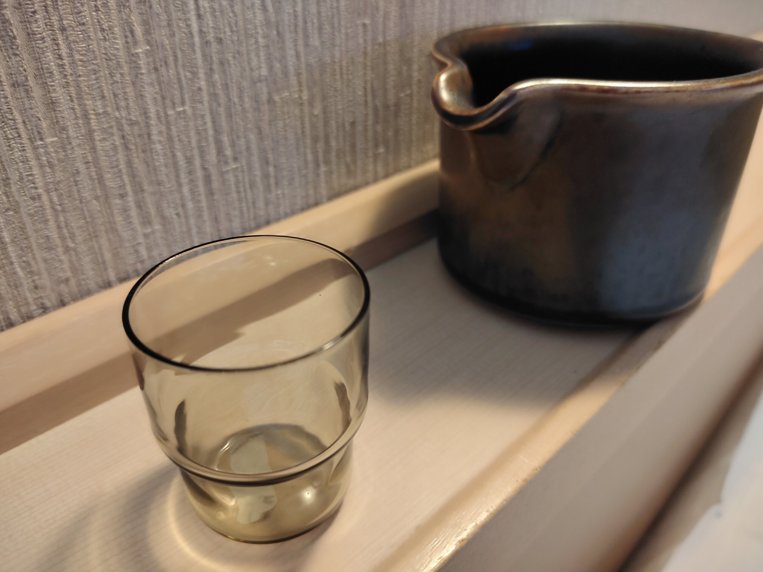 それで、このフィンランド・アンティークを徳利とお猪口の代わりにしようと、購入~。それを試したくて・・・