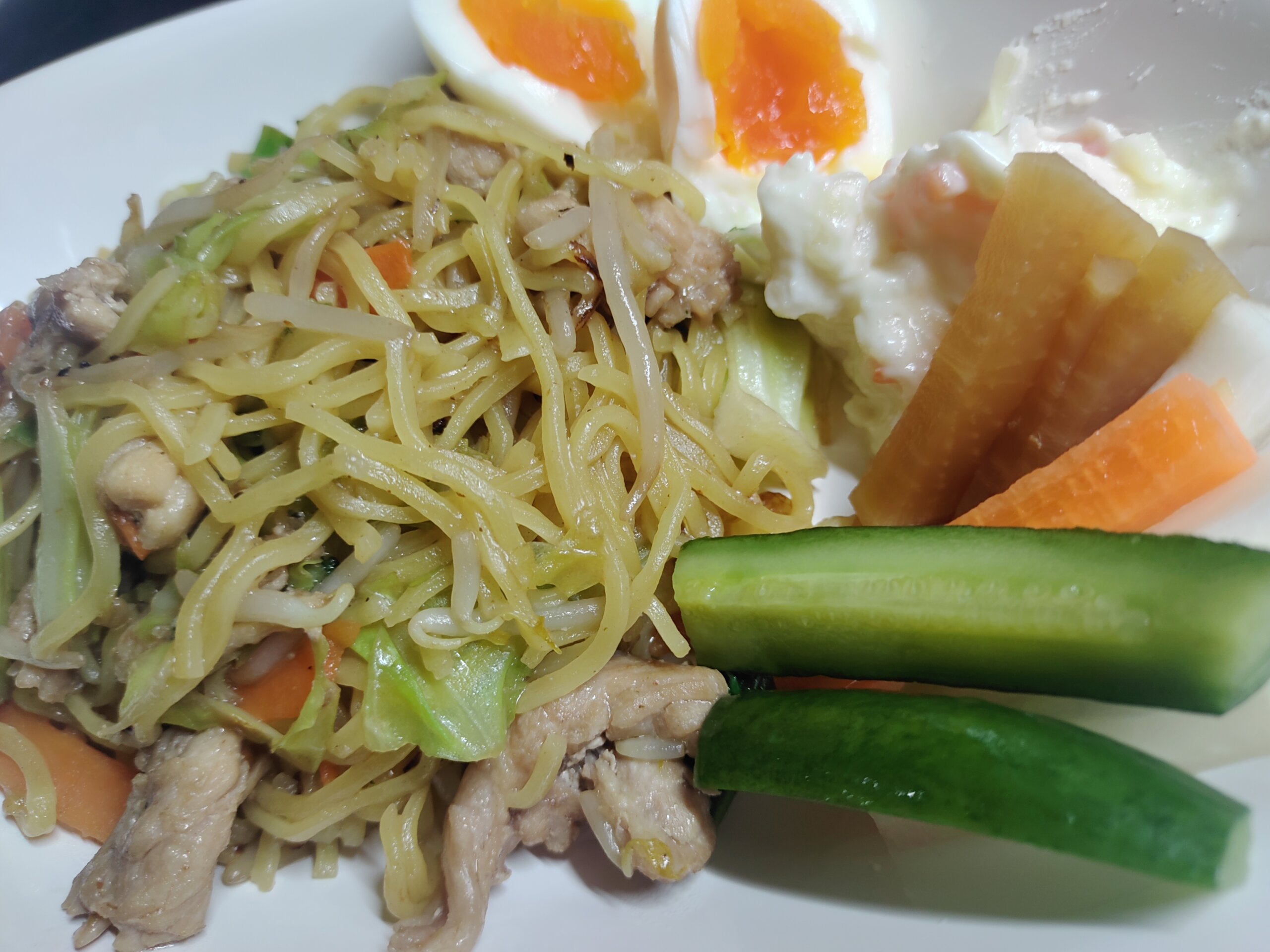 晩ごはんは、大晦日にお肉屋さんにそそのかされて買った、セセリ(大量)を消費すべく、やきそば。ポテトサラダ、大根の煮物、浅漬け、ゆで卵。