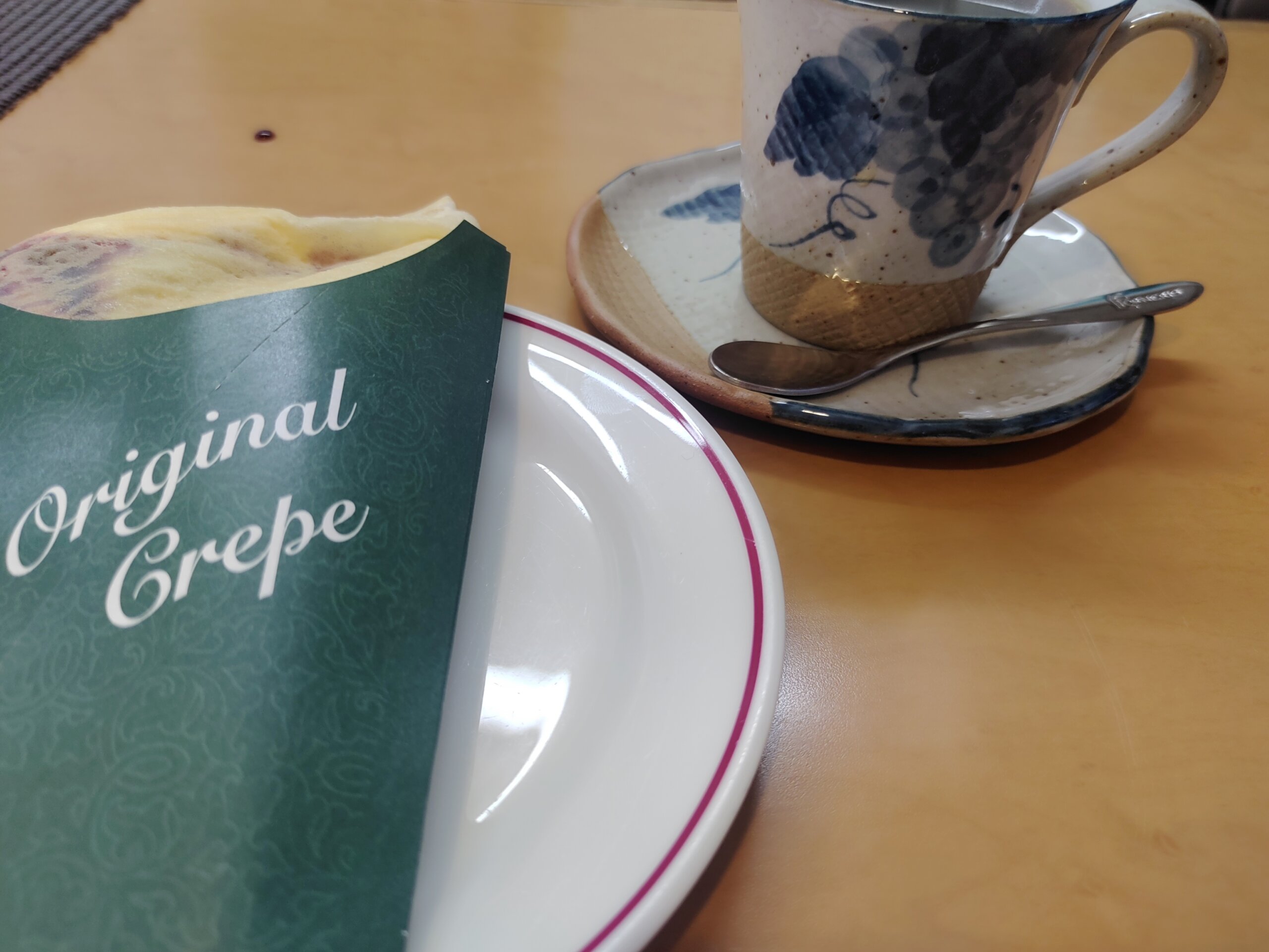 生クリーム少なめでつくってもらったブルーベリージャムのクレープも、さっぱりしていて美味しかったし、コーヒーもなかなか。