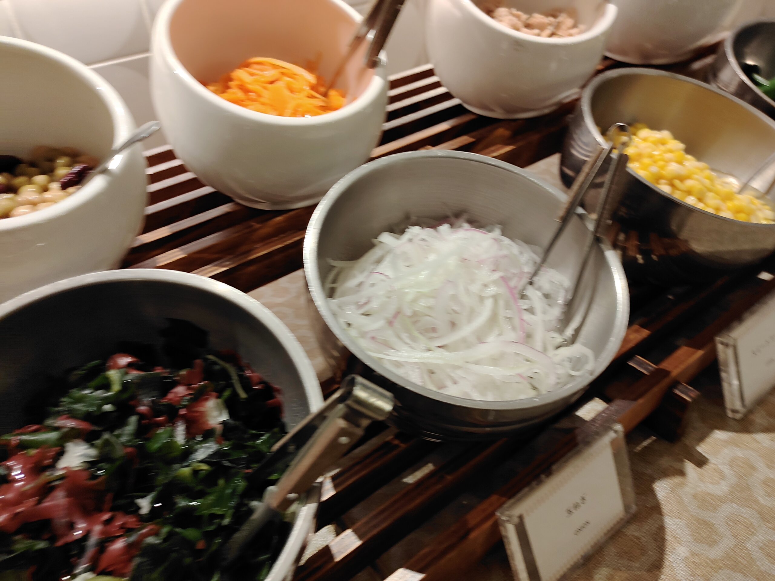 朝食は、ワンプレート+サラダビュッフェ。ほんだは、エビグラタンをチョイス