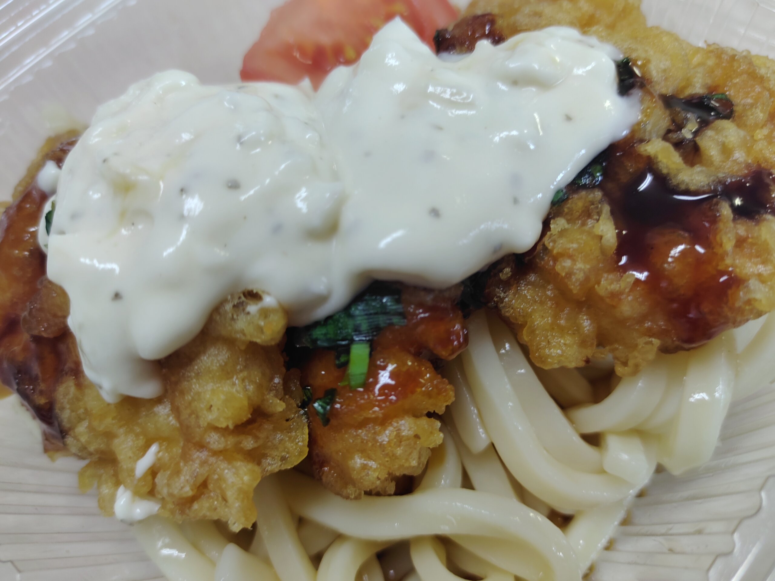 うどんに、タルタルソースの竜田揚げを合わせるというチャレンジ・メニューで、ほんだもうっかりチャレンジ。いや、なかなかおいしかったよ。